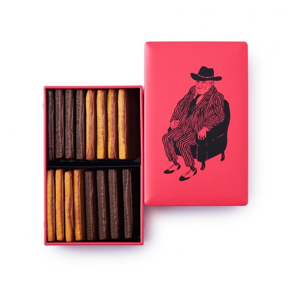 お酒やコーヒー・紅茶と一緒に楽しめるビスキュイにショコラをディップしたスパイスクッキーの詰め合せ缶。